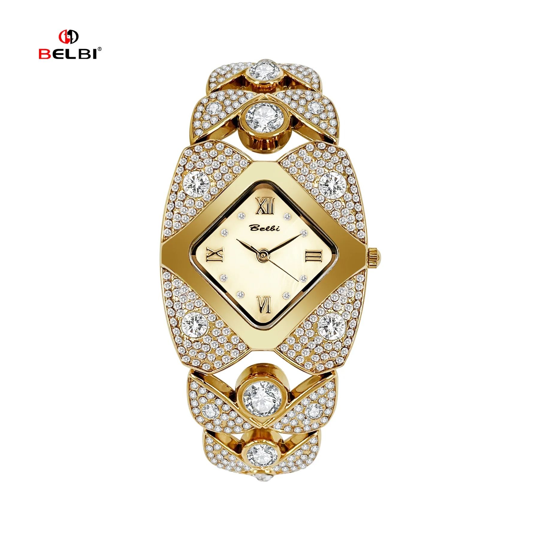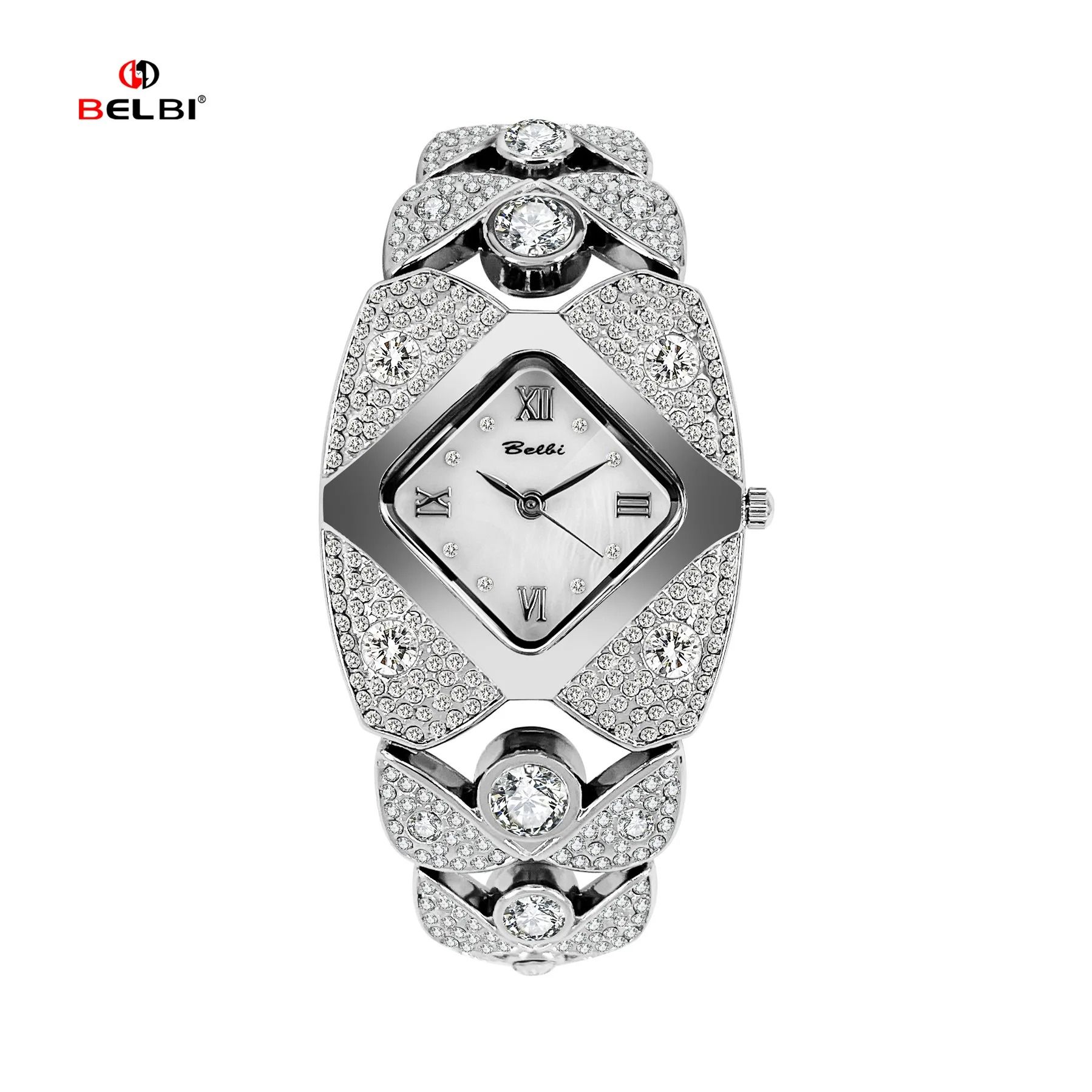 واجهة الساعة المربعة ذات الزوايا المنحنية تمنحها مظهرًا فريدًا. الأرقام الرومانية تضيف لمسة من الذوق القديم، بينما أحجار الكريستال المتناثرة بعناية على الإطار والسوار تُضفي لمعانًا ناعمًا يلفت الأنظار.